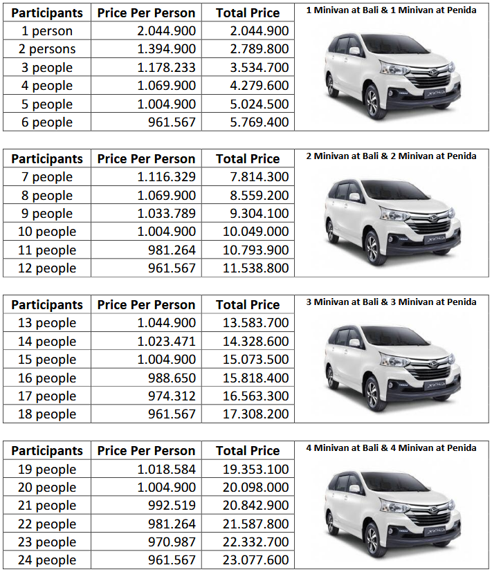 - Transportation + Driver & Fuel at Nusa Penida
